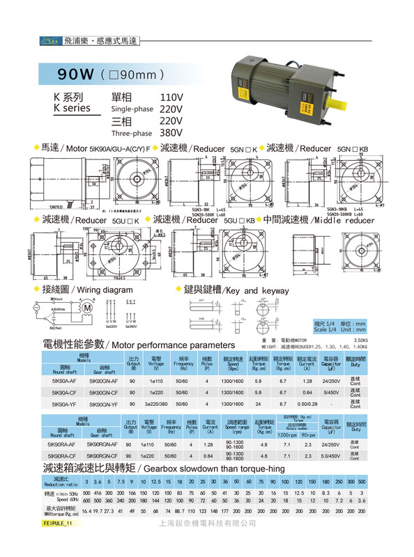 K系列5GN90K感應(yīng)式馬達90W(90mm)