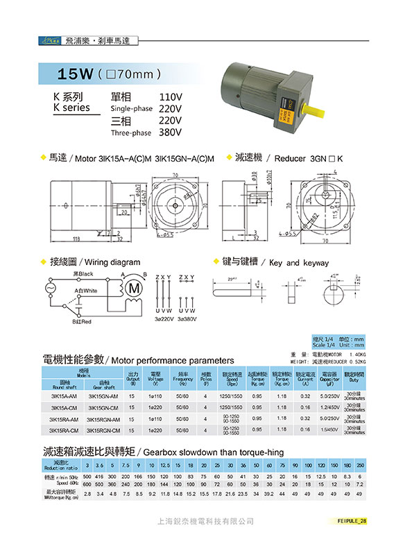 K系列3GN15K剎車馬達(dá)15W(70mm)