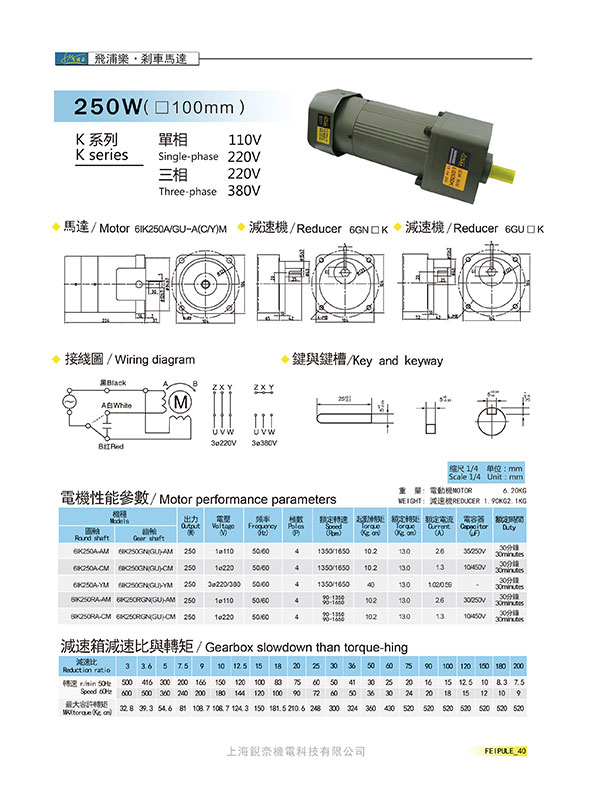 K系列6GN250K剎車(chē)馬達(dá)250W(100mm)