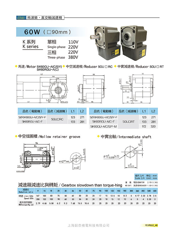 K系列5GU60RC/RT直交軸減速機60W(90mm)