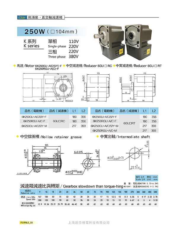 K系列6GU60RC/RT直交軸減速機(jī)250W(104mm)