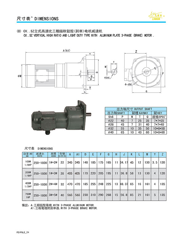 CV..SZ 立式高速比三相縮框鋁殼減速機